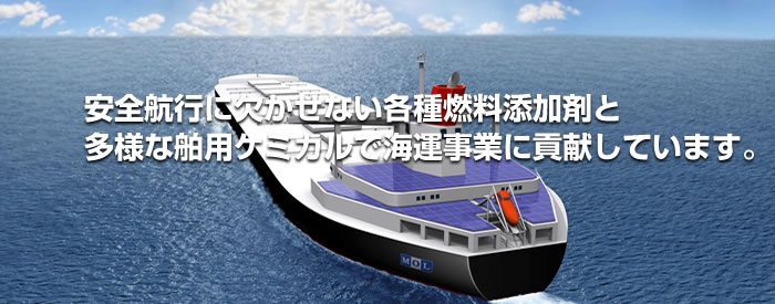 マリン事業は、当社創業時の船舶用重油添加剤の輸入販売事業を源とし、その後、国産製品開発、販売を半世紀を越える現在まで受け継ぎ、船舶用ケミカルメーカーとして時代を超えて内外の船舶の安定運航に貢献してまいりました。
